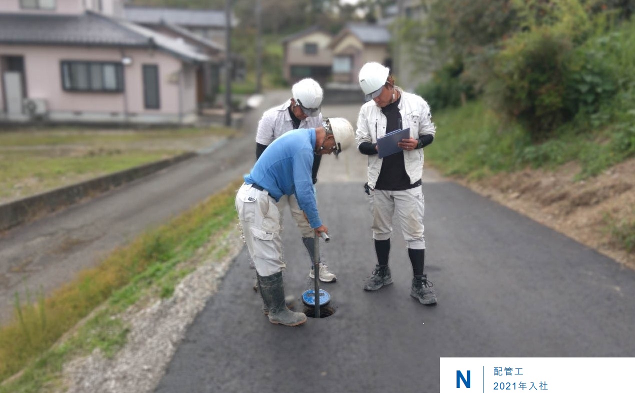 自分が配管した現場が終わると達成感があります。 地域インフラを支える仕事なので、やりがいがあり目標をもって成長していけます。
